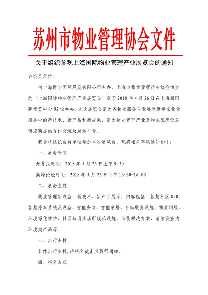 关于组织参观上海国际物业管理产业展览会的通知