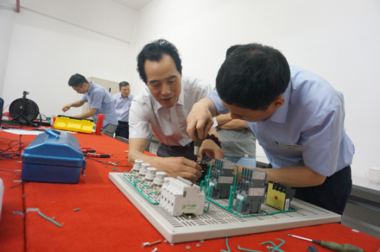 进入集训的5位电工,在大赛组委会成员苏州技师学院王德斌、夏建平两位老师的课程辅导下,各选手的技能均得到显著提升,技能实操也越来越规范。