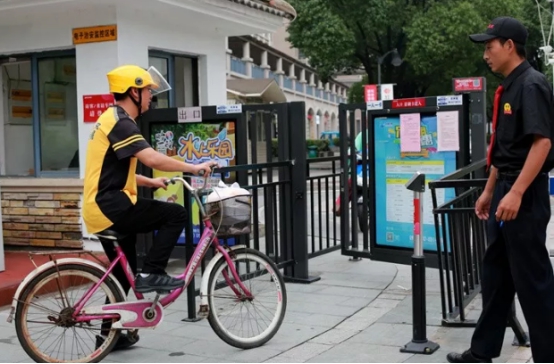 外卖小哥骑电瓶车进入小区,发生了不少人身安全事故,也发生过损坏小区设施、绿化的问题。